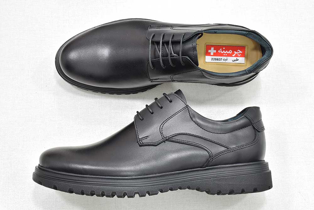 کفش طبی جنس رویه کفش از چرم و نوع آستر آن نیز از چرم می باشد و کفی داخل کفش متحرک و قابل شستشو است