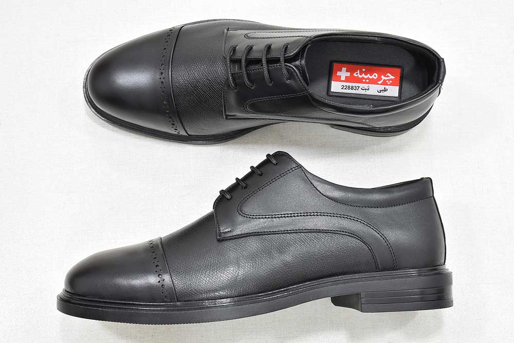 کفش مجلسی کد : 483 جنس رویه کفش از چرم طبیعی و نوع آستر آن نیز از چرم می باشد و کفی داخل کفش متحرک و قابل شستشو است